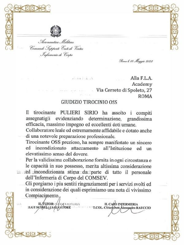 Compiacimento Allieva O.S.S. Pulieri | FLA Medical Academy Skip to main content