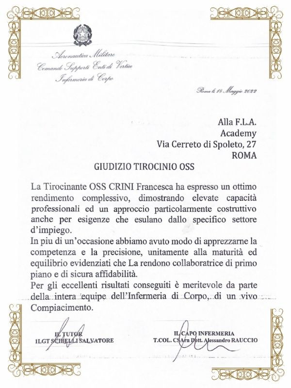 Al termine del Tirocinio presso il Ministero dell'Aeronautica Militare una nostra Allieva ha ricevuto un vivissimo Compiacimento! Congratulazioni alla Nostra Allieva