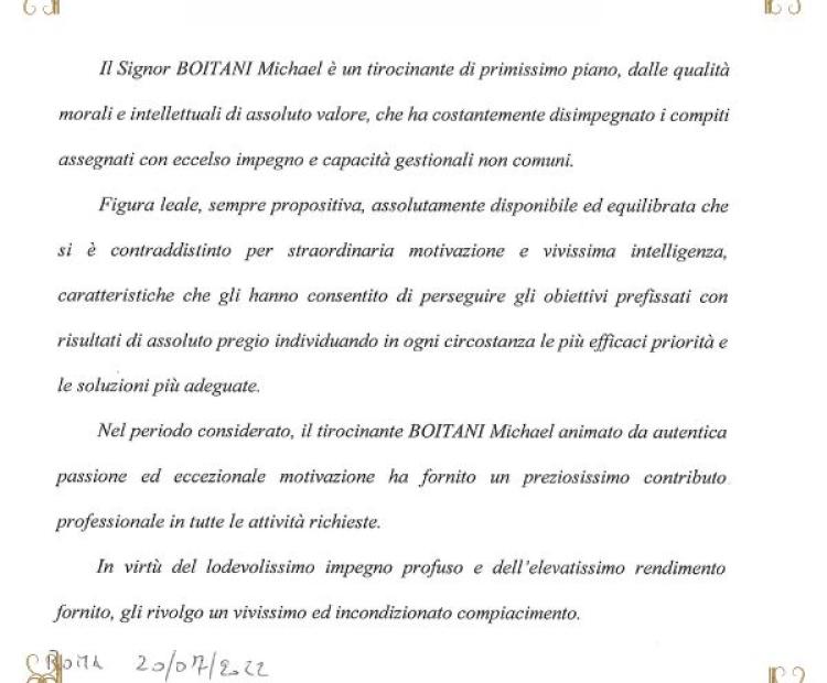 Al termine del Tirocinio presso una Struttura un nostro Allievo ha